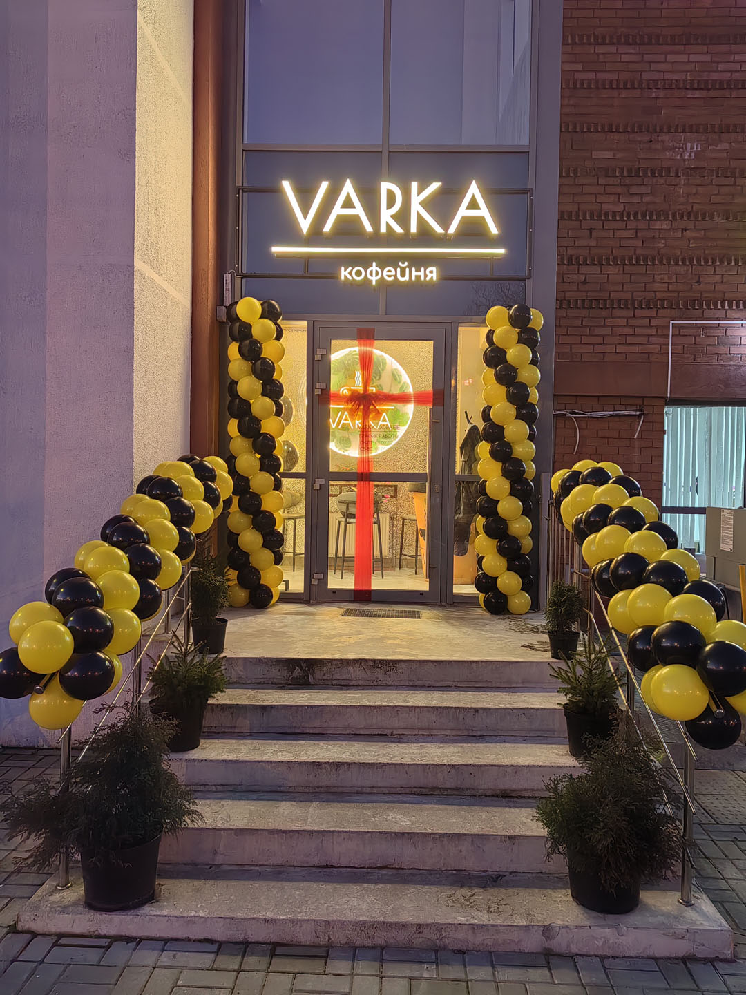 Украшение шарами входной группы